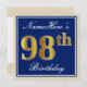 Elegant, Blue, Faux Gold 98th Birthday + Name Invitation
