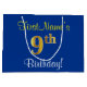 Elegant, Blue, Faux Gold 9th Birthday; Custom Name Large Gift Bag