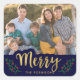 Elegant Blue Festive Foliage Merry Holiday Photo Square Sticker