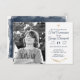 Elegant First Communion invitation in navy blue with gold floral details. It is personalised with your custom photo. Find matching products in our shop or contact us.
