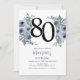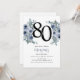 Elegant Blue Floral 80th Birthday Invitation