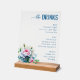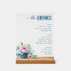 Elegant Blue Floral Beverage Menu Acrylic Sign