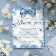 This elegant design features a watercolor Victorian floral motif showcasing delicate blue and white chinoiserie-style elements, including a vintage bow. Stylish calligraphy is paired with classic serif fonts.