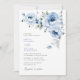 blue floral wedding theme design with elegant black script calligraphy lettering.