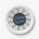 Elegant Blue Floral Christmas Holiday Wishes Paper Plate