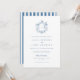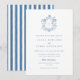 Elegant Blue Floral Crest Wedding Invitation with Striped Back