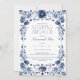 Host a timeless celebration with this elegant blue floral bridal shower invitation, designed with a classic porcelain-style frame and delicate botanical flourishes. The refined navy and dusty blue palette is perfect for a formal shower or “something blue” bridal theme.