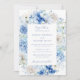 This wedding invitation features a watercolor floral frame with elegant flowers in varying shades of blue and handwritten script font. With its sophisticated flower frame and attention to detail, this invitation will set the tone for a memorable and elegant wedding.