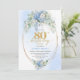 Elegant Blue Floral Gold 80th Birthday Invitation