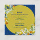 Complete your wedding stationery suite with this elegant blue and gold citrus floral details card. Featuring watercolor lemons, oranges, greenery, and white blossoms on a deep navy background with a golden frame, this design is perfect for Mediterranean, vineyard, or garden weddings.