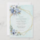 Elegant Blue Floral Gold Frame Wedding Invitation