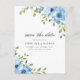 Modern blue watercolor flowers wedding save the date postcards.