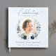 This is an elegant celebration of life memorial guest book. The design features a beautiful calligraphy font and a blue and white floral and greenery wreath around a personalised photo. This memorial guest book can easily be personalised to create a special tribute for your loved one using the template provided. Please contact the designer for any queries regarding this design or for any matching products.