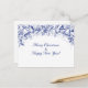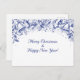 Elegant Blue Floral Merry Christmas Chinoiserie Postcard