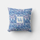 Elegant Blue Floral Monogram Cushion
