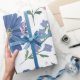 Elegant Blue Floral Pattern with Fresh Greenery Wrapping Paper