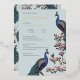 This Elegant Blue Floral Peacock Bridal Shower Foil Invitation features hand-drawn blue and teal peacocks perched on Magnolia branches in full bloom in black ink with real gold foil, against an elegant soft blue background. Personalise with your bridal shower details by clicking on "Personalise this template" on the product page. All text is editable.
