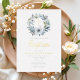 Elegant Blue Floral Religious Boy Baptism Foil Invitation.
