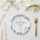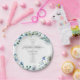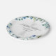 A beautiful blue and white watercolor flower paper plate for a child's baptism ceremony. Lovely religious party decor featuring an elegant floral bouquet and a pretty cross behind the custom script for your gathering or Catholic ceremony.