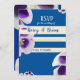 Modern blue RSVP photo and with flowers and white lines. Customisation, easy to personalise design.