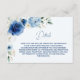This blue floral wedding details enclosure card is the perfect addition to your wedding invitation suite, allowing you to provide guests with all the important information they'll need to know about your special day. It is the perfect way to add a touch of personality to your invitations. You can include information about accommodation, reception location, wedding registry, and other important details your guests need.