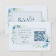 Elegant Blue Floral Wedding RSVP QR Code Enclosure Card