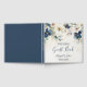 An elegant blue floral wedding guest book with delicate navy blue and creamy white watercolor flowers and winter greenery.