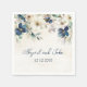 An elegant custom napkin for your winter wedding wedding table with a beautiful navy blue and teal watercolor floral theme.