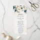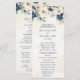 Custom wedding program with elegant dark blue and cream watercolor flowers and winter greenery. Customize these order of ceremony cards with your own text.