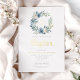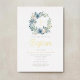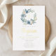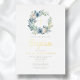Elegant Blue Floral Wreath Boy Baptism Gold Foil Invitation.