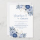 Elegant Blue Flower Baptism Christening Cross Invitation