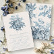 Personalise this lovely monochrome soft dusty blue vintage floral theme bridal shower invitation with a soft hand drawn bouquet of flowers, script calligraphy, and retro line label style design on the front and French toile chinoiserie style floral pattern on the back side over a gorgeous ivory background colour. It's the perfect simple and elegant invitation to invite guests to shower your bride-to-be! Easily add your wording to make it uniquely yours, and order prints + envelopes, or download the printable digital file and print at home! Discover more colours in this design + the matching stationery & decor + wedding invitations and save the dates in the full collection above ♥ Custom design requests, colours, product collection additions, and template questions are always welcome - click the "message" button or email direct (with a quick response time!): contact@figandlilyco.com. Design is lovingly created by Fig and Lily Studios - sending blessings and thanks for being here with us ♥