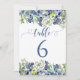 Watercolor elegant navy blue flowers with blueberries wedding table numbers. Blueberry floral wedding table numbers.