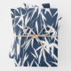 Beautiful and elegant wrapping paper sheet set in blue and white colours with branches and leaves.