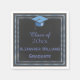 Elegant, modern and sophisticated men's graduation paper napkins for graduations. With a sophisticated shiny blue double frame printed image on a cool classy chalkboard background with a matching coloured graduation cap at the top. All text is fully customisable to meet your requirements. If you need help to customise your product please contact me through my store and i will be very happy to help you.