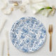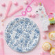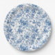Elegant Blue French Toile Roses Floral Paper Plate