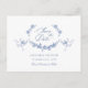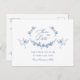 Elegant Vintage Blue French Garden Floral Wedding Save the Date Postcard.