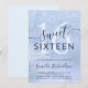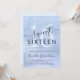 Modern chick Sweet 16 birthday party invitation with ombre blue faux glitter background and elegant calligraphy font.