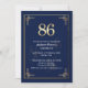 Elegant Blue Gold 86th Birthday Party Invitation