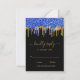 Elegant Blue Gold Black Glitter Drips Wedding RSVP Card