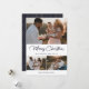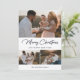 Elegant Blue Gold Calligraphy Photo Collage Holiday Card