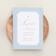 Invite family and friends to celebrate a baptism with this elegant invitation, featuring a light blue background and gold typography.