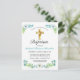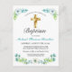 Celebrate your son's Baptism with friends and family by inviting them with this elegant faux gold and teal blue floral Baptism Invitation Postcard. This design features a beautiful gold cross with a blue floral frame against a simple white background. Customise the text and font to your liking and there's a place on the back to preprint your return address for your convenience. Other fonts and styles available. Please contact us with your special requests and we'd be happy to help you.