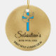 Elegant Blue Gold Cross First Communion Ceramic Tree Decoration
