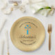Elegant Blue Gold Cross First Communion Party Paper Plate