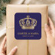 Elegant Blue Gold Crown Wedding Favour Square Sticker