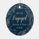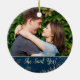 Elegant Blue Gold First Christmas Engaged Photo Ceramic Ornament