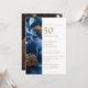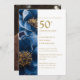 Elegant Blue Gold Floral 50th Anniversary Photo Invitation