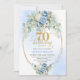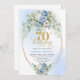 Elegant Blue Gold Floral 70th Birthday Invitation