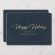 Elegant Blue Gold Foil Hand Lettered Business Holiday Card